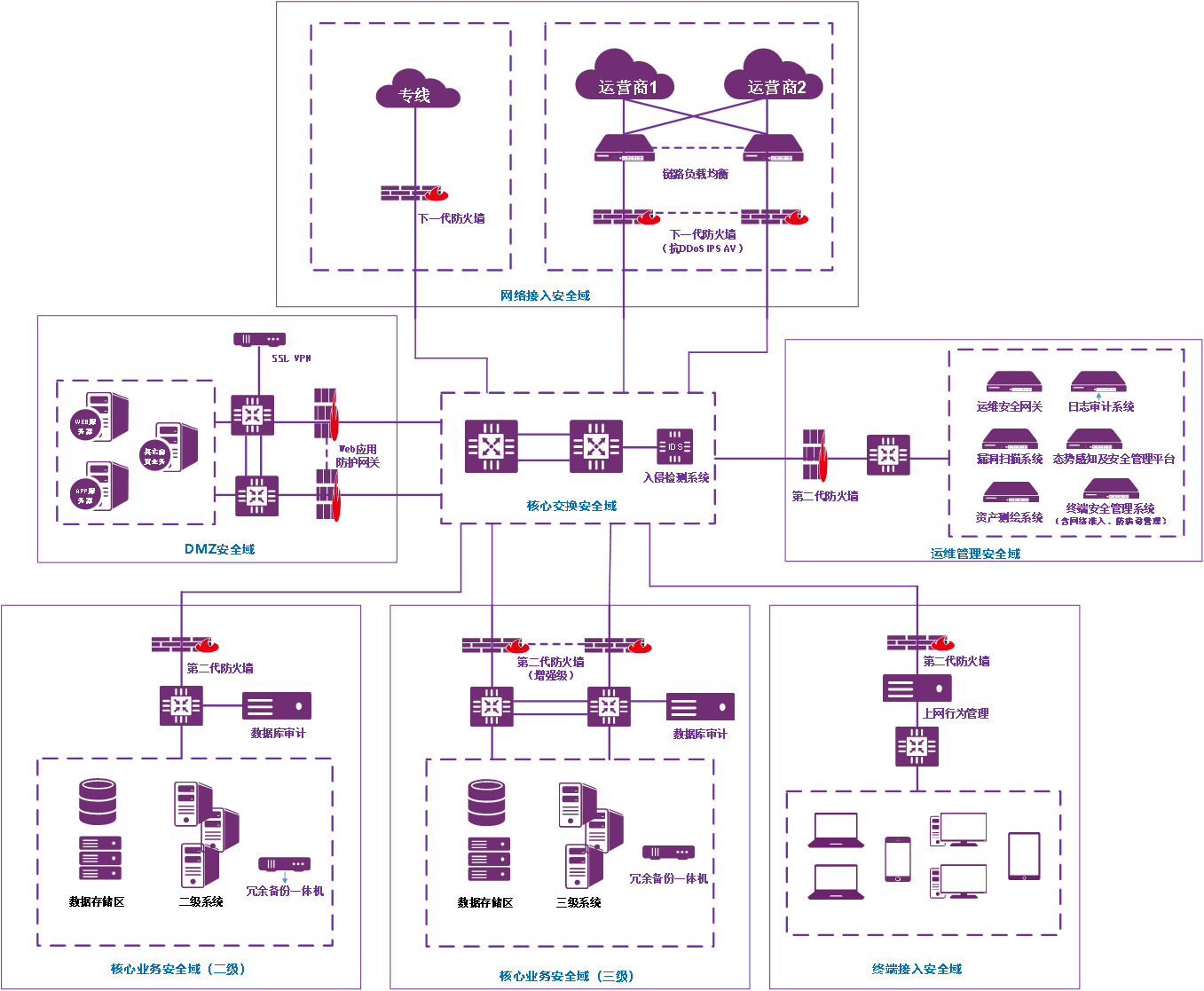 方案設計階段,靈狐科技以《網絡安全等級保護基本要求》、《網絡安全等級保護安全設計技術要求》等國家標準為依據(jù),并結合行業(yè)特性要求、監(jiān)管單位要求、用戶提出的安全需求進行系統(tǒng)性方案設計。在滿足相應等級安全物理環(huán)境、安全通信網絡、安全區(qū)域邊界、安全計算環(huán)境、安全管理中心及管理部分要求基礎上,最大程度發(fā)揮安全措施的保護能力。